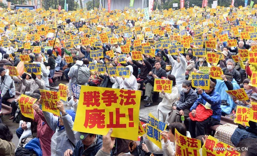 सरकारको गलत नीतिको कारण युद्द विरोधी जापानको नीतिलाई रक्षा गर्न असहयोग पुग्ने भन्दै प्रदर्शनकारीहरुले सिन्जो आवे नेतृत्वको जापानी सरकारको आलोचना गरेर नारावाजी गरेका थिए ।