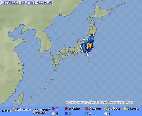 भूकम्पको अनुभव टोकियो,चिवा तोचिगी , फुकुसिमा लगायतका स्थानमा गरिएको छ ।