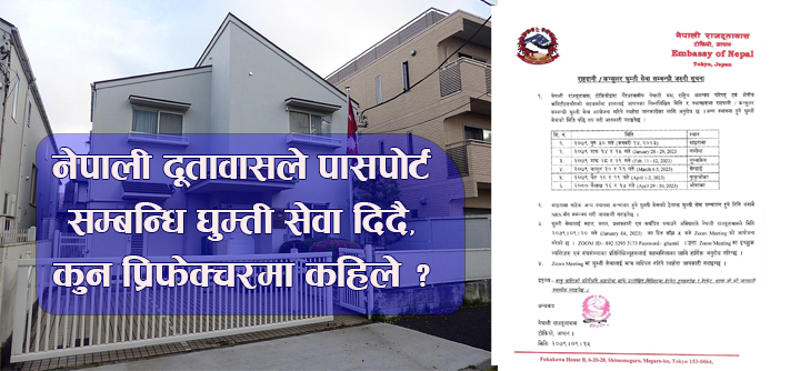 जापानको विभिन्न प्रिफेक्चरमा रहेका नेपाली नागरिकहरुको सुविधालाई मध्यनजर गर्दै दूतावासले घुम्ती सेवा दिन लागेको हो । दूतावासले गैर आवासीय नेपाली संघ, राष्ट्रिय समन्वय परिषद् एवं क्षेत्रीय कमिटीहरूसँग सहकार्य गरी राहदानी तथा कन्सुलर सेवा दिने जापानका लागि नेपालका राजदूत डा दुर्गाबहादुर सुवेदीले जानकारी दिनुभयो ।