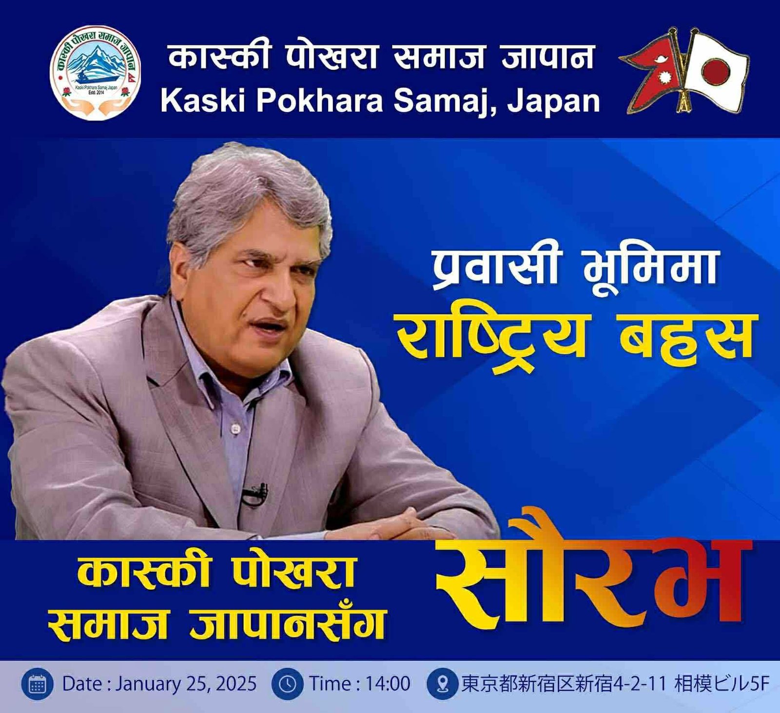 कार्यक्रम आगामी जनवरी २५, २०२५ मा दिउँसो २ बजे टोकियोको शिन्जुकु क्षेत्रस्थित सभा हलमा हुने आयोजकले जनाएको छ।