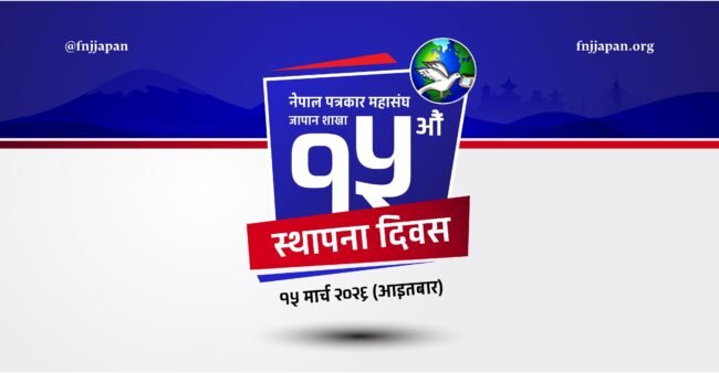 टोकियो । नेपाल पत्रकार महासंघ जापान शाखाले आफ्नो १५औँ स्थापना दिवस आगामी मार्च १५ तारिखमा भव्य रूपमा मनाउने निर्णय गरेको छ।