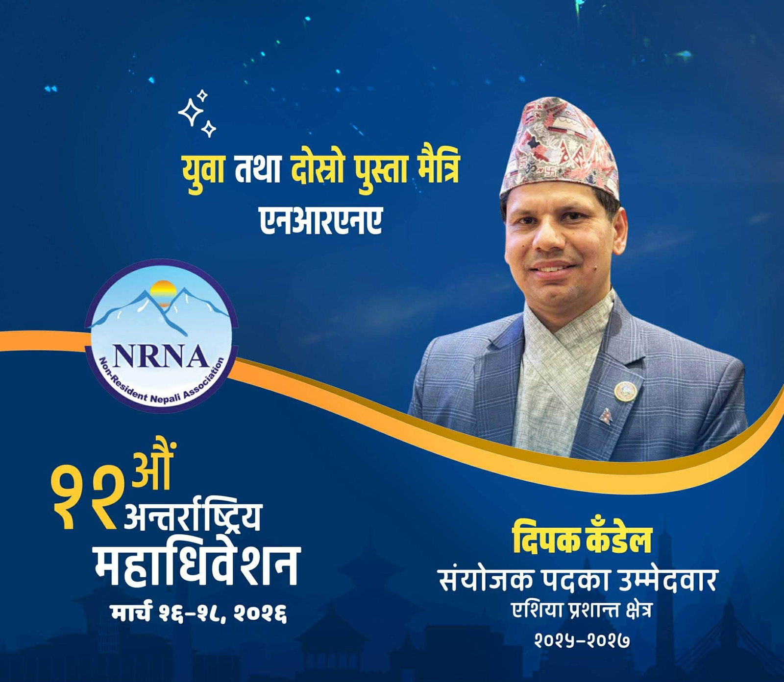 एनआरएनए एसिया–प्यासिफिक क्षेत्रीय संयोजकमा दिपक कडेलको उम्मेदवारी घोषणा